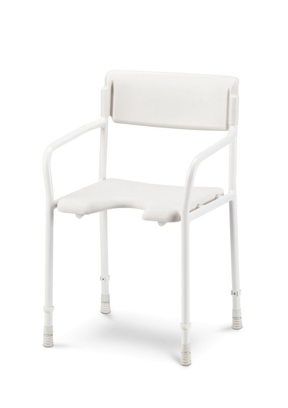 Mit Armlehnen, Rückenlehne und Hygieneausschnitt.