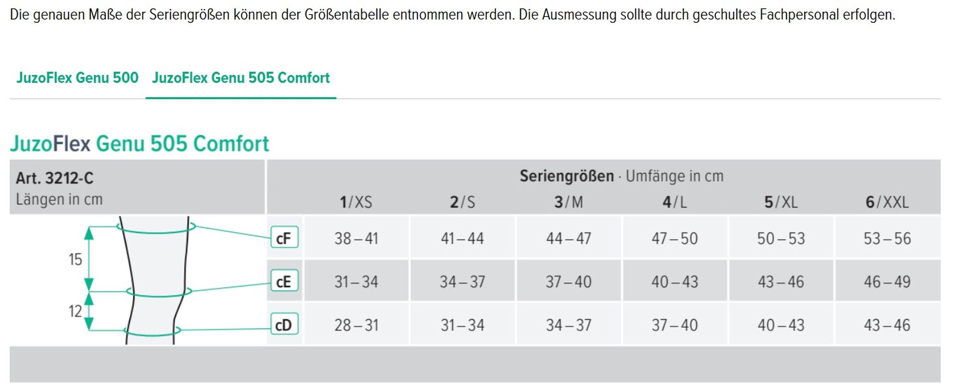 Hinweis: Die genauen Maße der Seriengrößen können der Größentabelle/Maßtabelle entnommen werden. Die Ausmessung sollte durch geschultes Fachpersonal erfolgen.