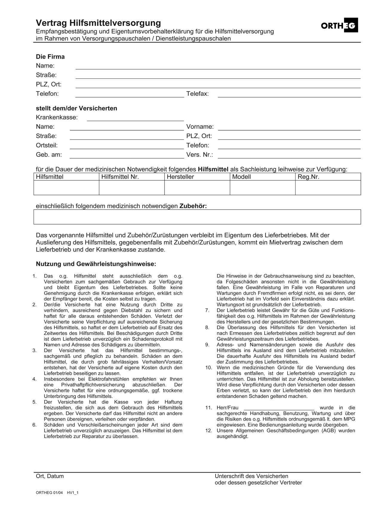 - Empfangsbestätigung und Eigentumsvorbehaltserklärung für die Hilfsmittelversorgung im Rahmen von Versorgungspauschalen /Dienstleistungspauschalen